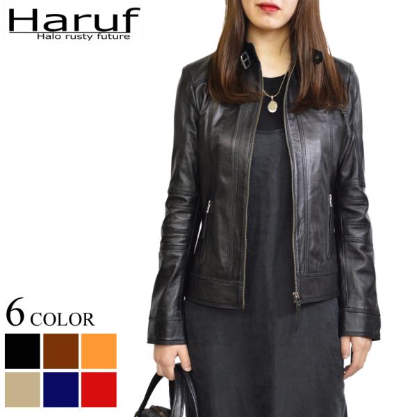 レザージャケット レディース 本革 ノーカラー ライダースジャケット 革ジャン シングル ライダース 革 ジャケット シンプル おしゃれ ブランド Kp410 Haruf Leather 通販 Yahoo ショッピング